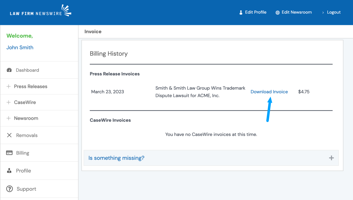 Your billing history is always available in your dashboard. Go to Billing in the side menu.