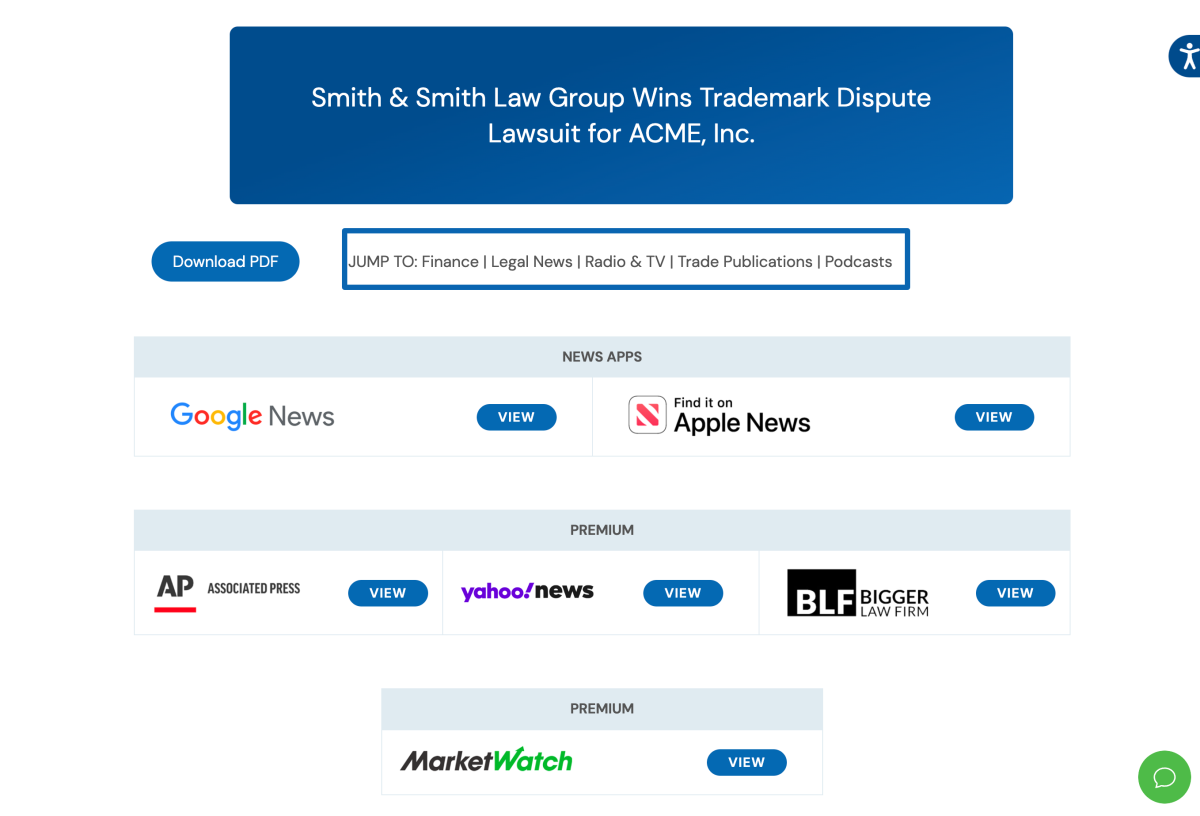 While many of Law Firm Newswire’s distribution outlets will keep your news on their site, some may only host news-related content for a limited time. This is especially common among our TV and radio publishers. If you’re reviewing a report that is several months old, you may find links that have expired. Nothing is wrong with the report; it’s just a normal part of the news business.
